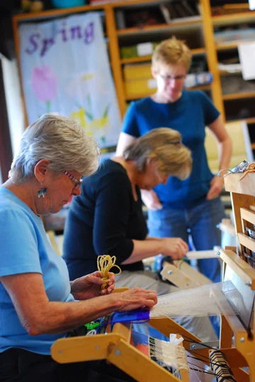 Rebecca Mezoff teaching a workshop about tapestry techniques