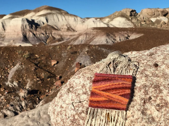 There are amazing patterns in the rocks. The layers are everywhere and always different. One formation has a lot of layers that look like wedge weave to me. So I pulled out some colors in similar hues and wove this little guy which might be my favorite thus far. Day #13.