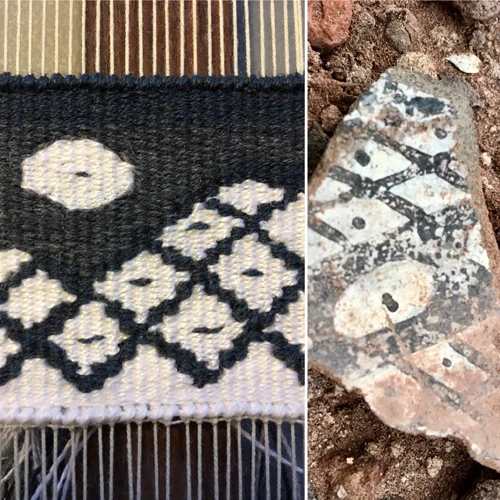 Rebecca Mezoff, Potsherd, 2 x 2 inch tapestry with inspiration
