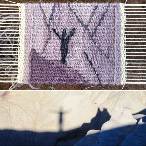 This little tapestry came from one of the petroglyphs at the base of the butte. I thought the glyph looked very much like weaving forms present-day indigenous people use.