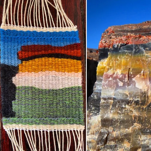 Day #26. Emily and I had one whole day in the park. I showed her some of my favorite spots. Martha's Butte, Jasper Forest, the keystone log and Blue Mesa, sunset at Pintado Point... I wove this little bit of the Chinle formation.