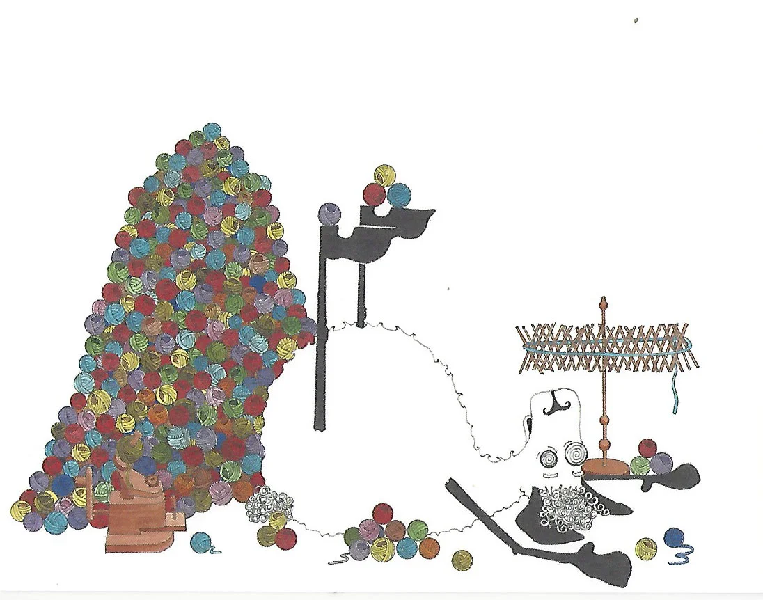 One other really fun item came from a collaboration with my artist-illustrator cousin, Molly McNeece. We are working on a book about tapestry weaving, but decided to offer a few images from the book as greeting cards. I have some extras to sell.
