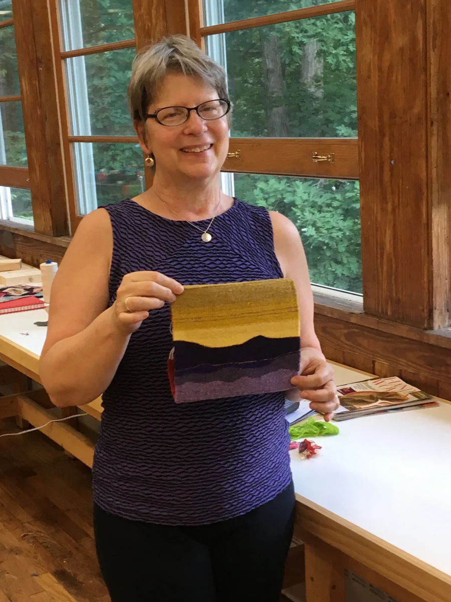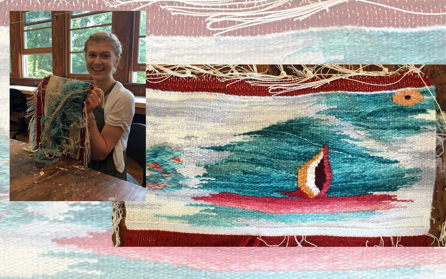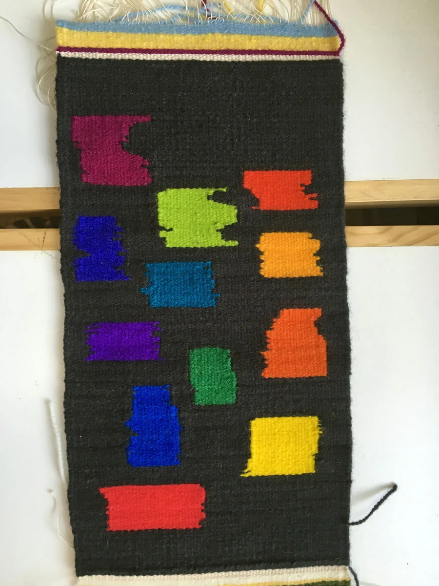Abbi Tucker worked on this weaving for a week. It was a push at the end and she had to leave out some elements she was committed to, but her color gradation was beautiful. Abbi had never woven before.