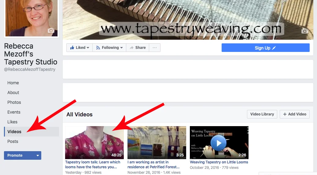 Yesterday I did my first lengthy FB Live on my business page, Rebecca Mezoff Tapestry Studio. If you missed it, you can see the replay on my page right now. I have pinned it to the top of the feed for the moment, but if you're seeing this a week or more down the road, just search for it using the guide below.