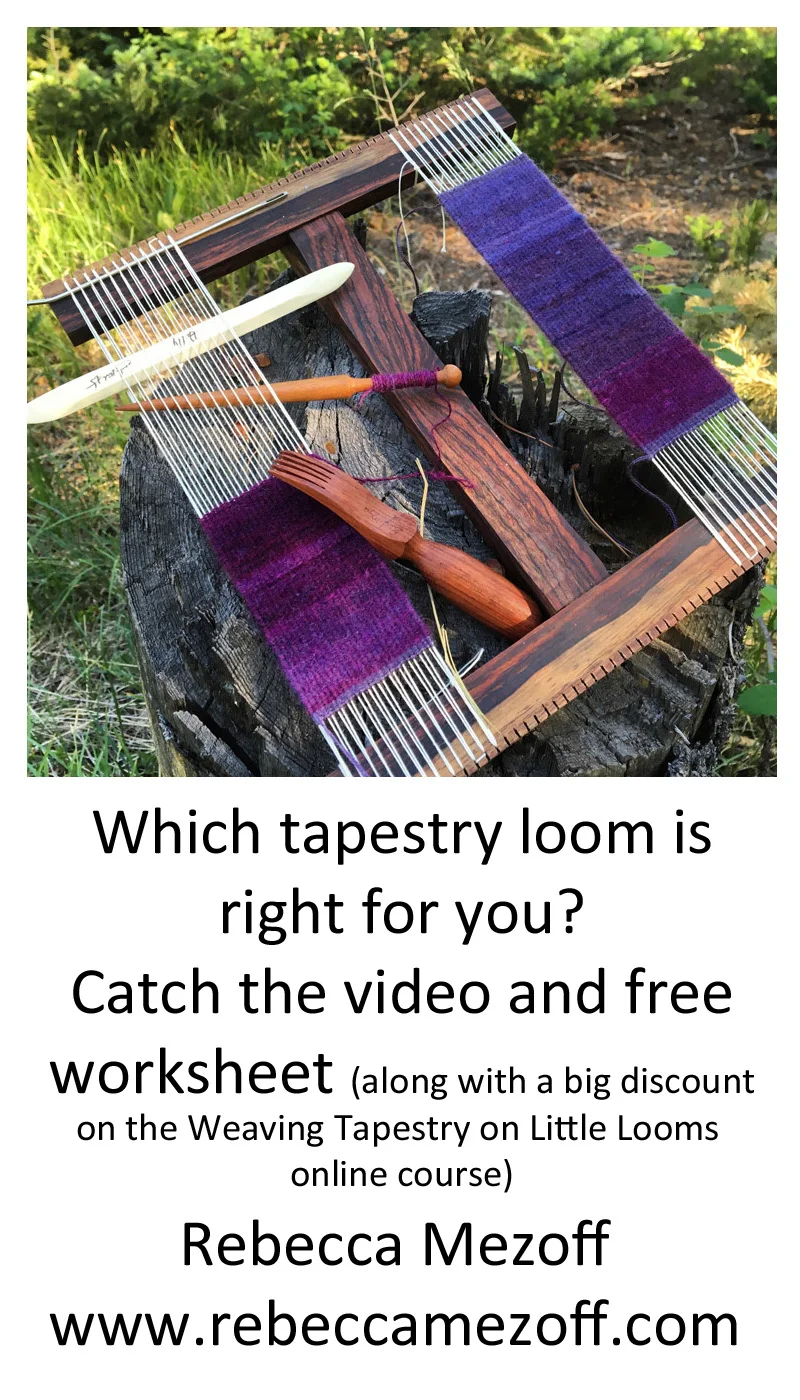 In the broadcast, I also tell you about a free download that lists all the looms and spells out the details I'm talking about in the video. You don't have to sign up for anything to get this freebie, just get the link from the video. It also includes a significant discount for my Weaving Tapestry on Little Looms online class, so if you're interested in that, you're going to want to watch that video.