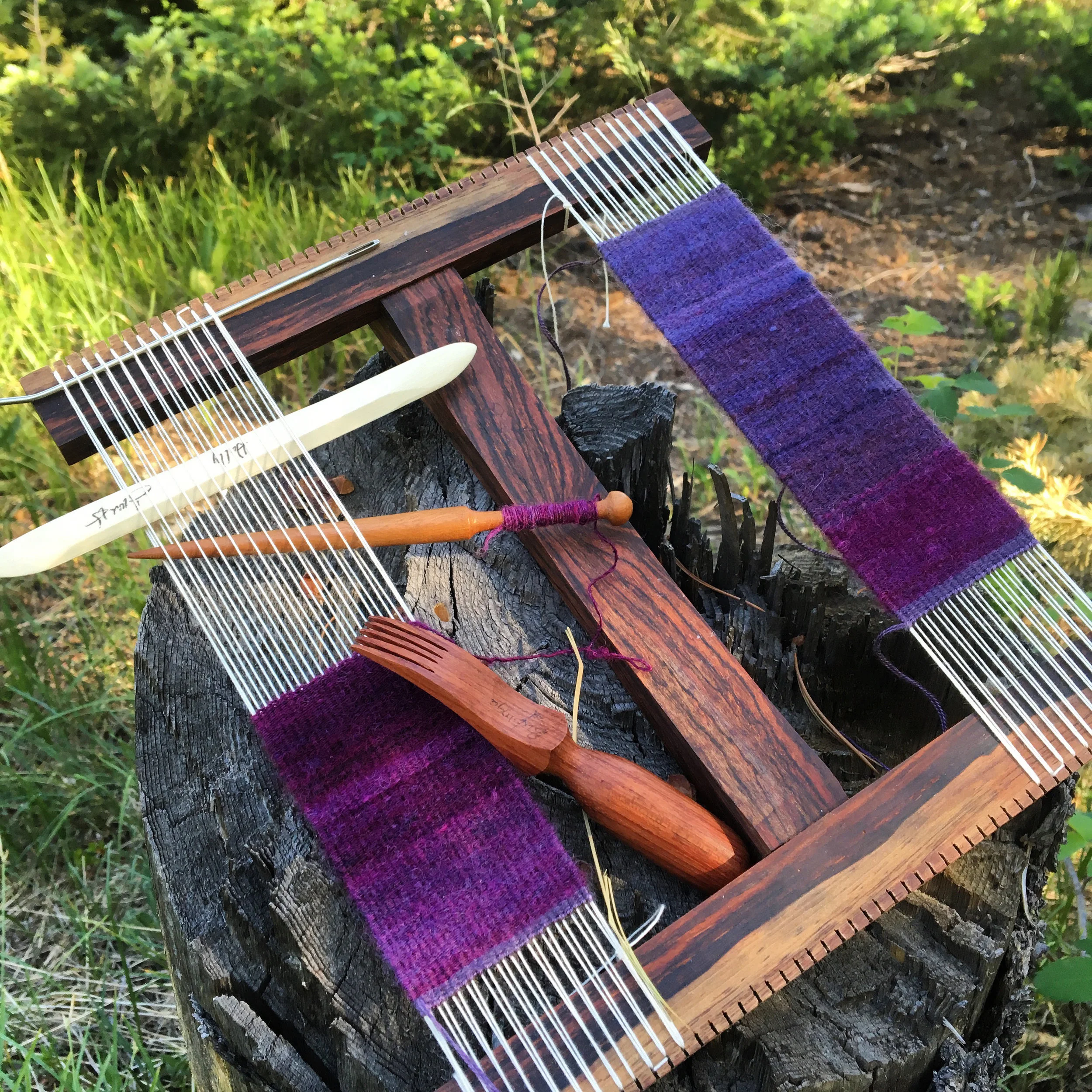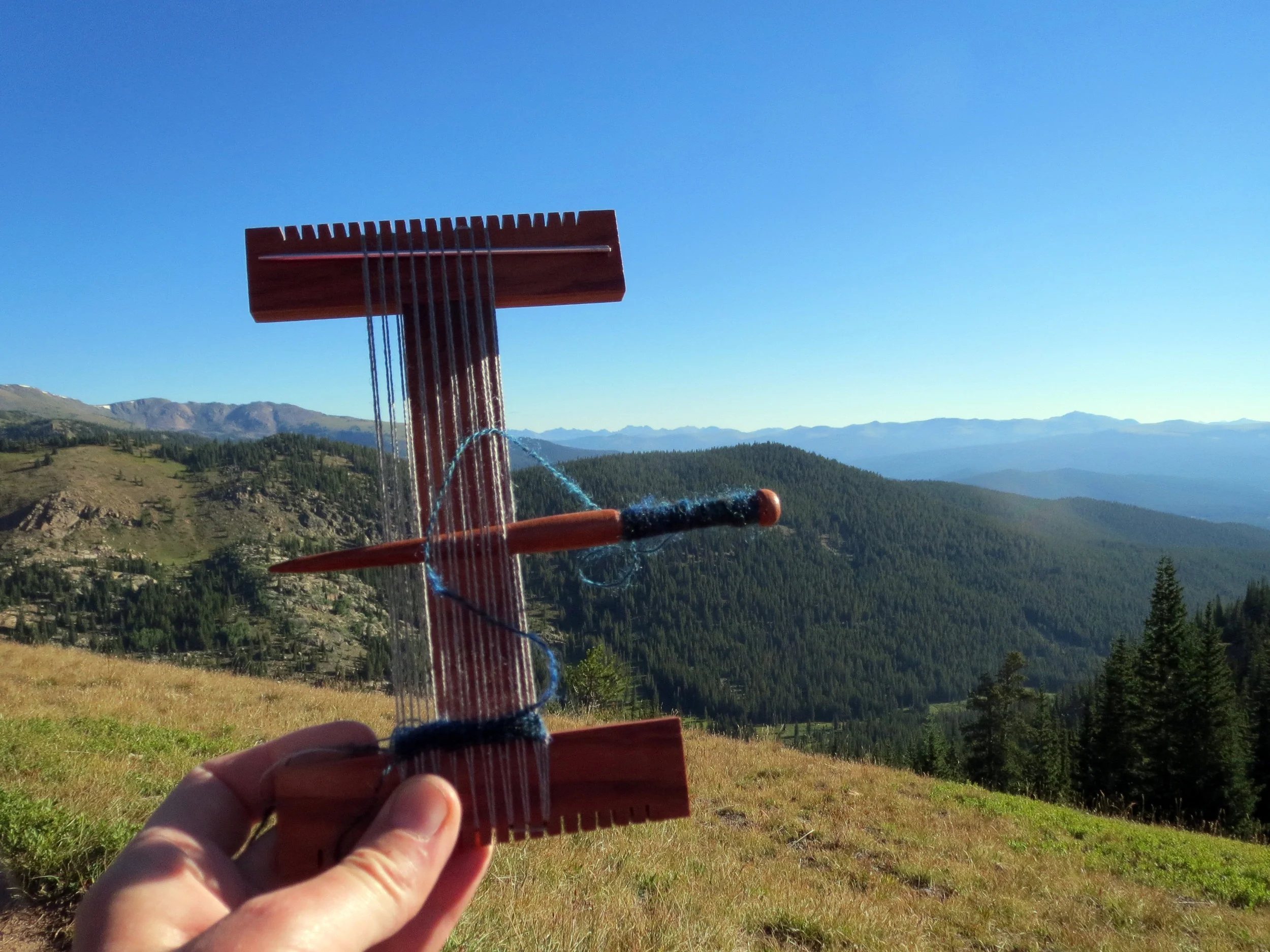 As a lightweight backpacker, my total pack weight before food and water is between 13 and 18 pounds. The lighter the better as food and water can add another ten pounds to the total. Hiking becomes miserable with more weight than that. So any craft that I bring into the backcountry has to be both small and light. When I bring a loom, I bring the smallest Hokett. I have sold these looms on and off over the last few years and always keep my eye out for the very lightest wood. I have one "tiny" loom that is about two ounces and I doubt I could find a lighter one. This is actually the only time I use that smallest of looms. I like the bigger looms even though I rarely weave on them edge to edge. The weaving is much easier when there is some free warp.