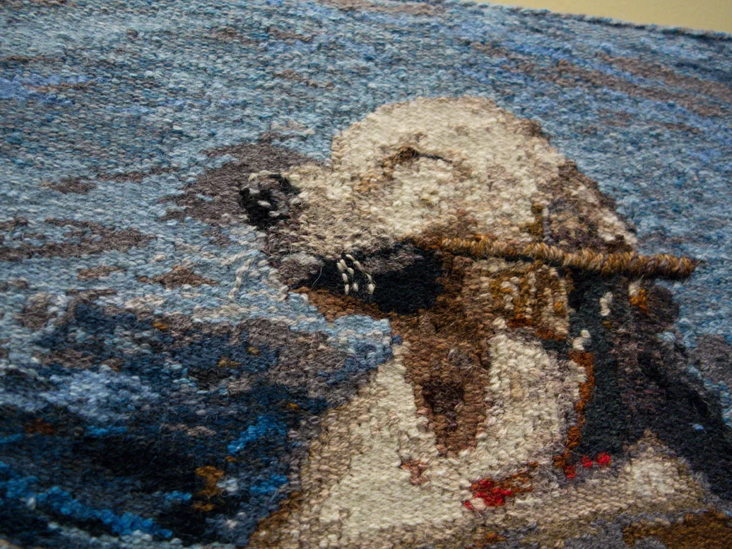 Kathy's calendar tapestries are wonderful. They are each 18 x 18 inches. I've seen a few of them in person. The Dog Days of Summer (August) I saw in years ago in a juried show at Intermountain Weaver's Conference and again in American Tapestry Biennial 9. October was in American Tapestry Biennial 10. She had a calendar printed of all of them for 2017 and I have been enjoying it all year so far.