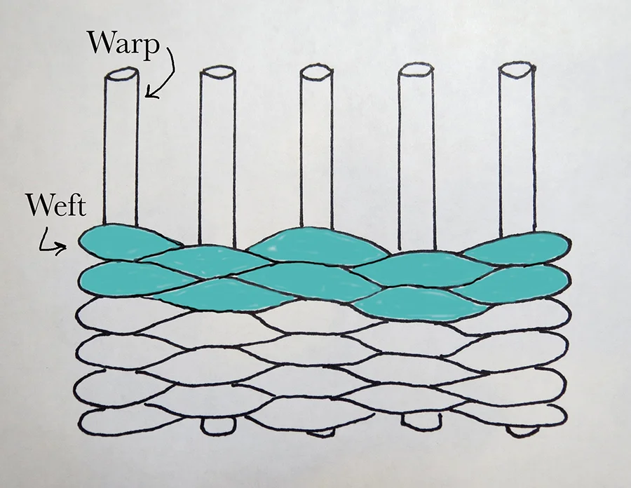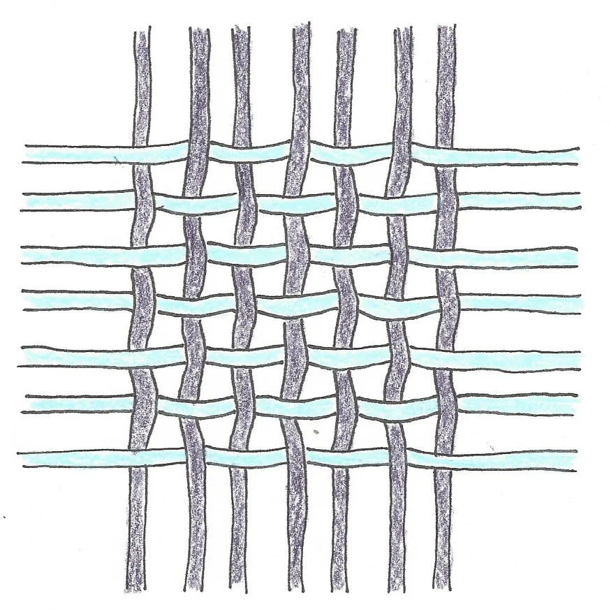 To make woven cloth, threads have to be interlaced in a pattern something like this to create a structurally sound fabric: