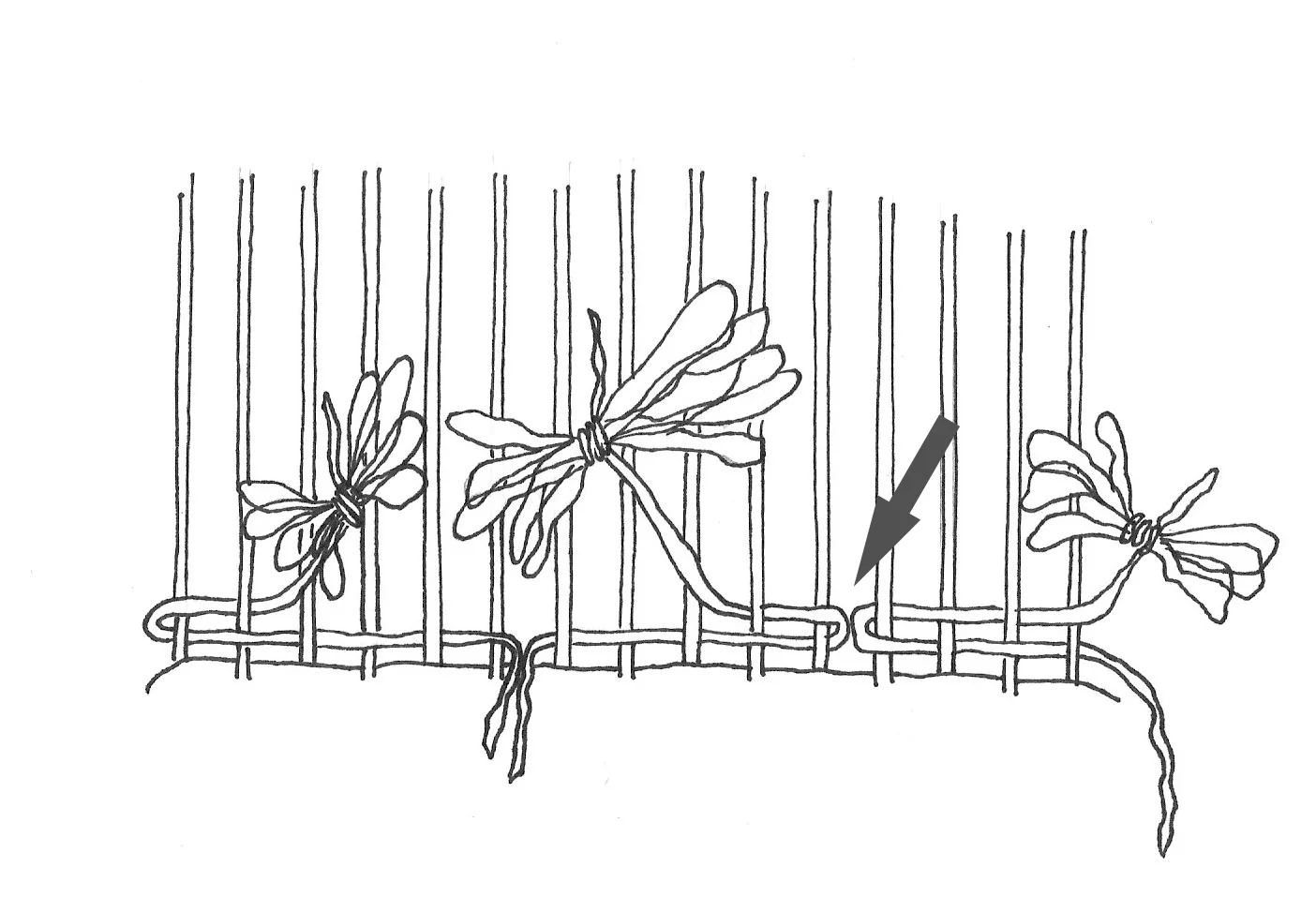 * By "weft relay" I mean the place where two wefts meet each other and then turn back like this: