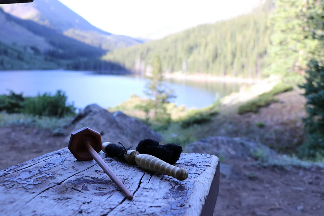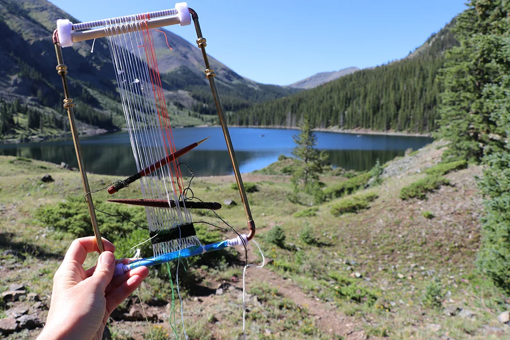 Summer is a great time for tapestry weaving and travel. Last weekend I packed an overly large bag (or two three) of yarn, spindles, and looms and had a few days car camping at 11,000 feet with friends.