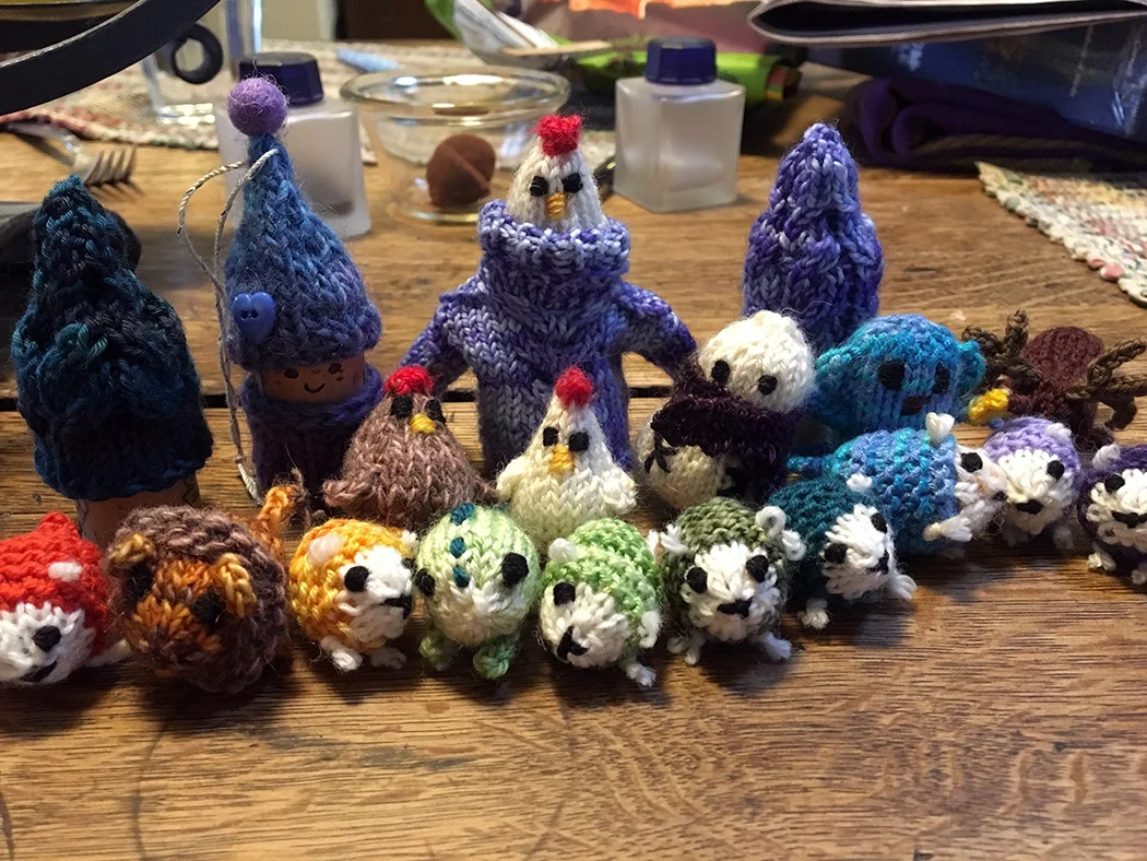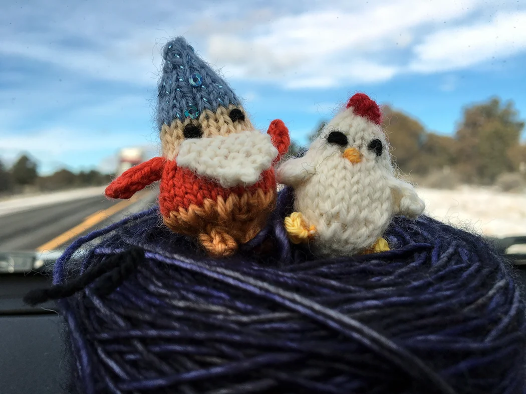 I had a bit of a vacation over the holidays. A few days in my hometown of Gallup, New Mexico and some time high in the Collegiate Peaks area of Colorado. I laughed with my family and friends, took leisurely walks in the desert, snowshoed in the mountains, and while chatting, doing puzzles, and playing games, I knitted. With all that time around kitchen tables I probably could have knit half a sweater. But I didn’t. Instead I made a gaggle of tiny creatures.*