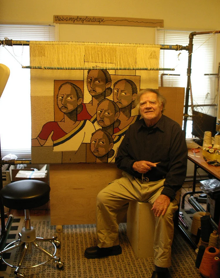 “Archie was also a passionate advocate for tapestry - writing, lecturing and teaching. His work and viewpoint have influenced the entire field of contemporary tapestry. Archie championed not only technical excellence, but also an attitude of exploration that was grounded in weaving itself. He encouraged weavers to develop their designs keeping tapestry’s structural grid of warp and weft in mind. His emphasis on process was reflected in his propensity to see weaving as a journey up the warp, a conversation between the weaver, the technical realities of weaving, and the unfolding image on the loom. He championed weaving on upright looms, from the front of the tapestry, for a more direct and interactive experience translating the image into tapestry.