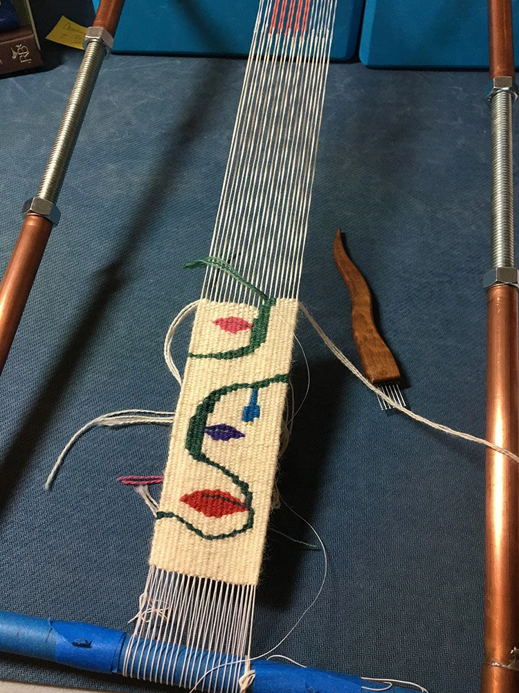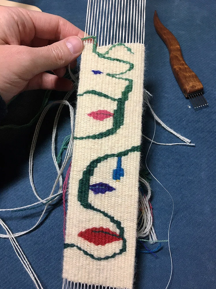 This small tapestry started as a lark months ago. I wanted to do a long narrow tapestry on a Fringeless warp during Change the Shed to practice curves and to test a new potential tapestry yarn from GIST Yarn (it hasn’t been released yet). All of those things were good.