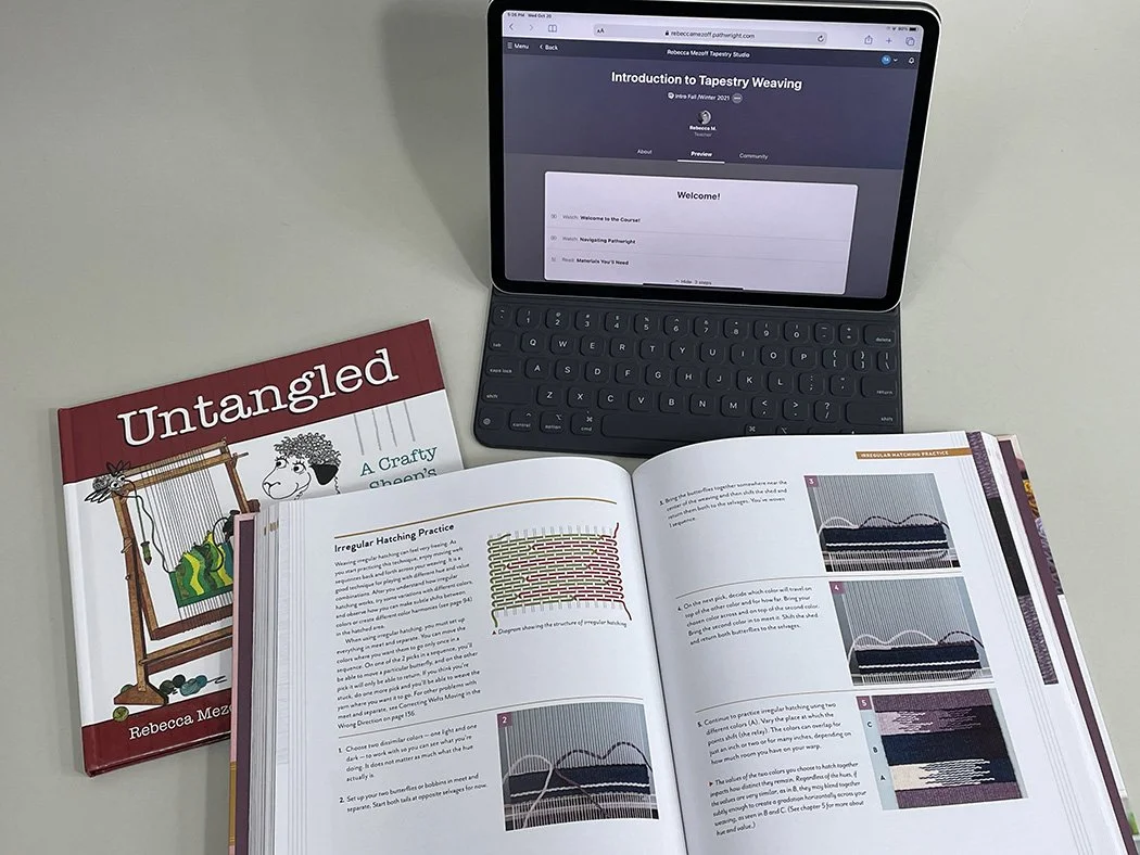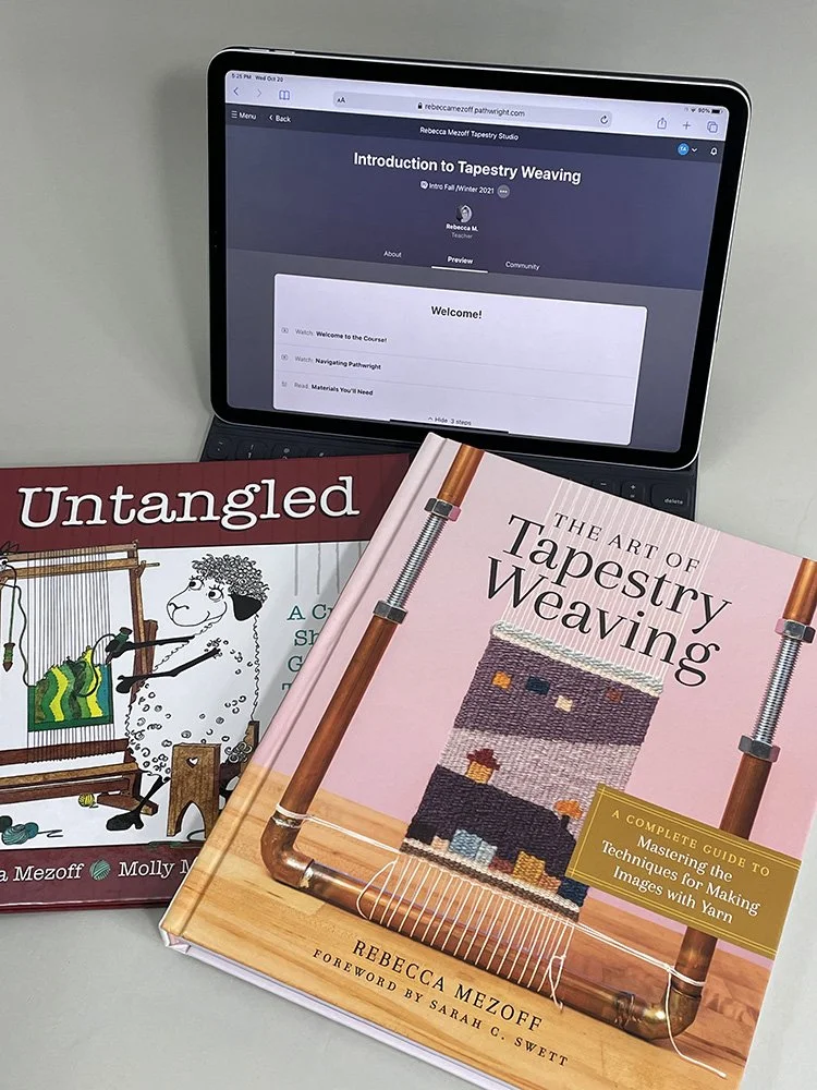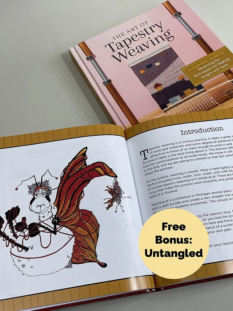 For the holidays, Iām offering a bundle of a signed copy of my book, The Art of Tapestry Weaving with the course, Introduction to Tapestry Weaving. The bundle also comes with a complimentary copy of my first book, Untangled: A Crafty Sheepās Guide to Tapestry Weaving ($20 value).