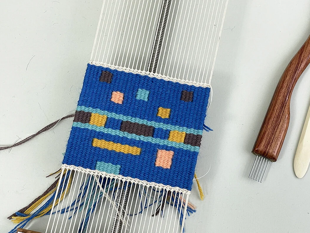 Samples from Rebecca Mezoff’s Introduction to Tapestry Weaving course. These samples all use Gist Yarn’s new tapestry wool, Array.