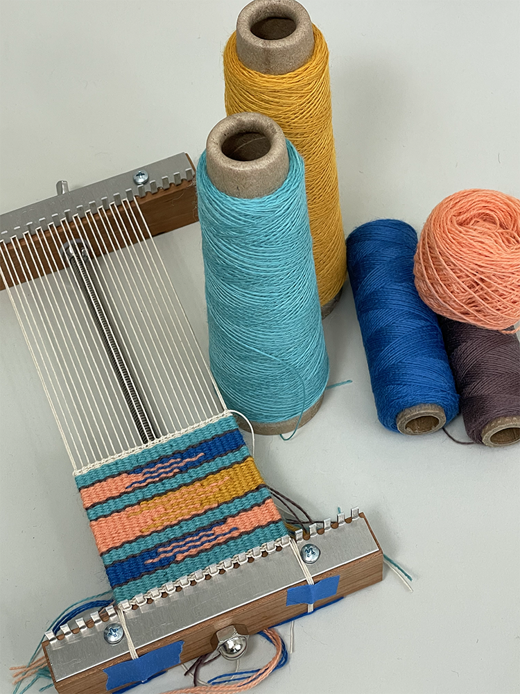 These images are from a new online course that I’m rolling out in September. It’ll be offered in a bundle with Gist’s new tapestry yarn Array and a Mirrix Saffron loom. (There will also be a kit version without the loom if you don’t need one.) The course is an introduction to tapestry weaving and so it has the very clever title of Introduction to Tapestry Weaving. You can find more details about the course here: https://rebeccamezoff.com/introduction-to-tapestry-weaving