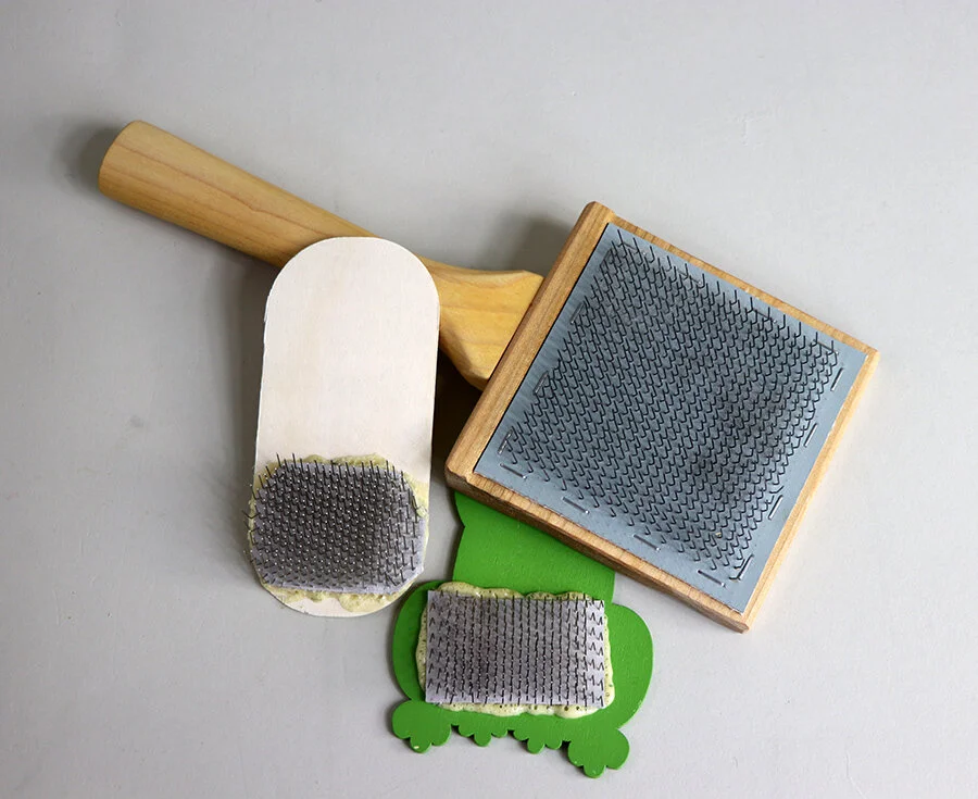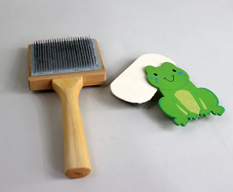 I found this cute frog at a craft store and glued on a piece of the carding cloth. Only after it dried did I realize that I glued the cloth on upside down. I need the teeth to be angled toward the handle side and I put it on upside down. That’ll never work.