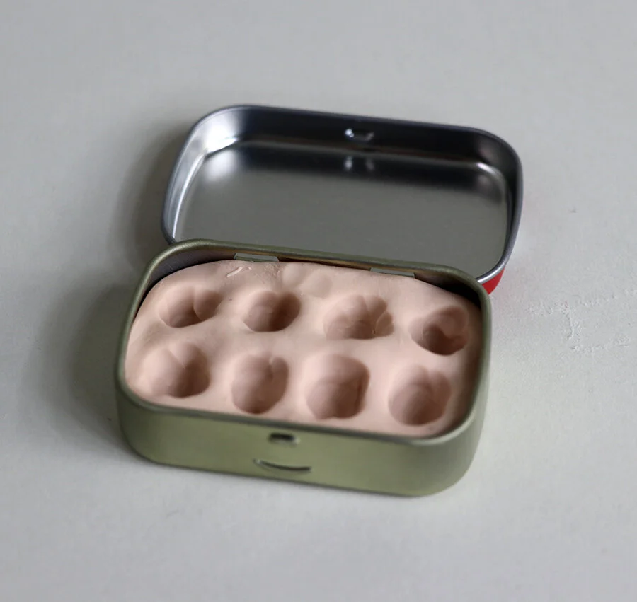 I wanted to bring a little watercolor kit along but even the small commercial ones are too heavy. Sarah Swett always has a tiny watercolor kit with her when she is out and about and I copied her idea with this Altoid tin. I used Sculpey clay to make the wells for the paint and then filled with liquid watercolors. I tested it on a hike and it seems to work!
