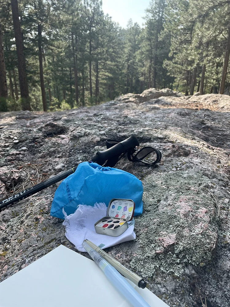 I have been experimenting with nature journaling and since I’m starting this hike more slowly than I normally would (think 11 miles a day instead of 18-20), I’m going to spend some time drawing. I expect some of that will be in the tent in the monsoon rains we are having in Colorado. By the time the monsoons quit completely in a couple weeks (fingers crossed), I’ll be ready to hike those 20 mile days when I have to. Most days will be in the 15-18 mile range.