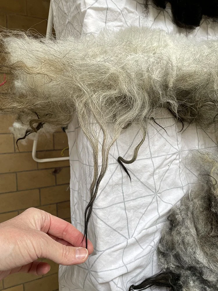 Kate Larson for that fantastic class at YarnFest a few years ago where I actually got to separate a dual coated sheep fleece and thus had at least a bit of an idea of what I might be doing here