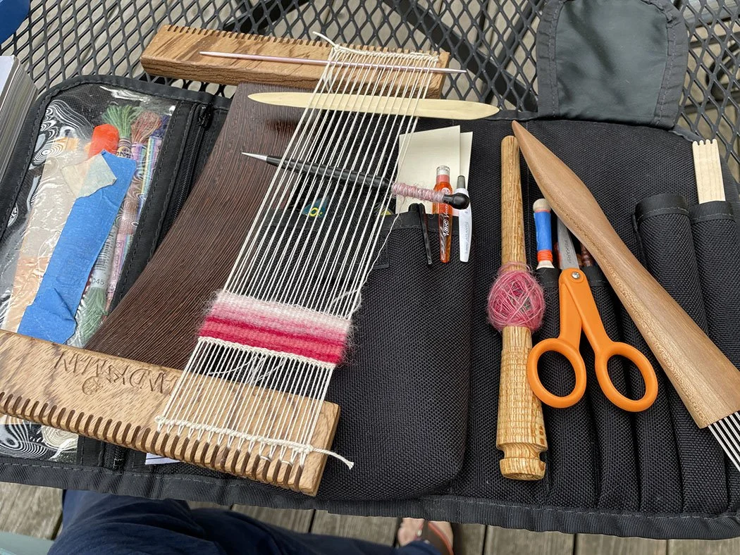 But the truth of the matter is, I had some wonderful hours of spinning and then sitting in a deck chair watching the colors build on each other as I wove back and forth, selvedge to selvedge, on a tiny tapestry loom. It was a wonderful reset in a difficult week.