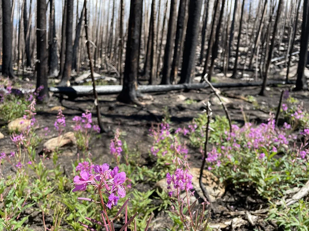 Flowers coming back at the edge of the Cameron Peak burn area near Fort Collins, CO, 2022. Fire was in 2020.
