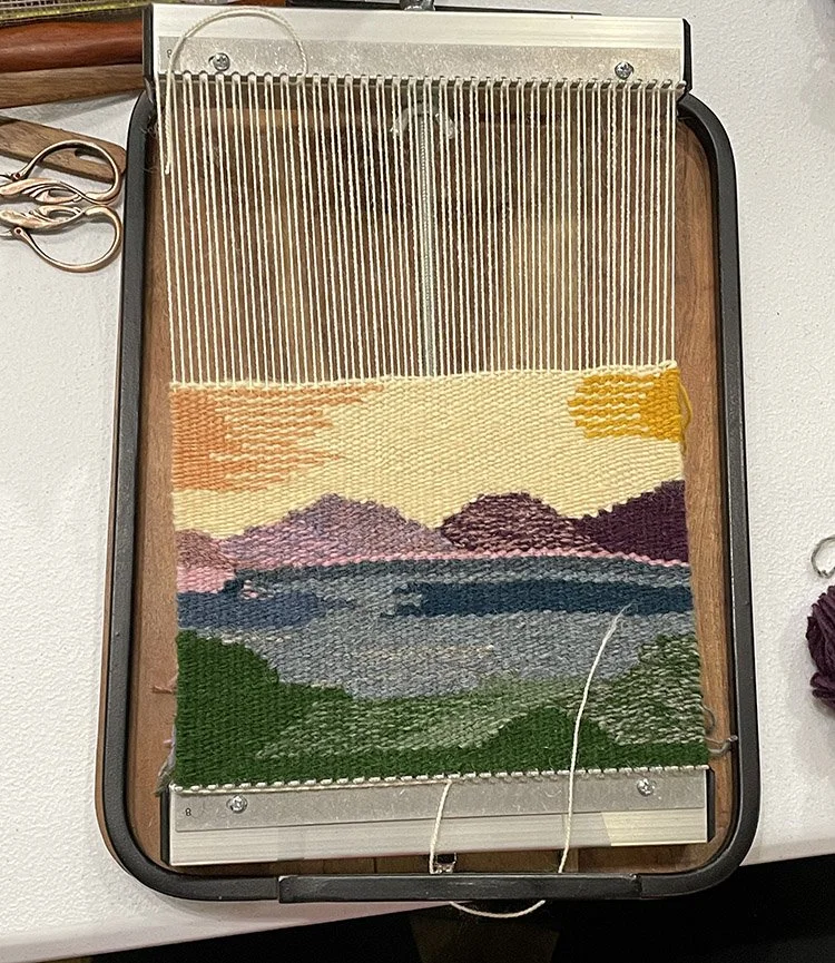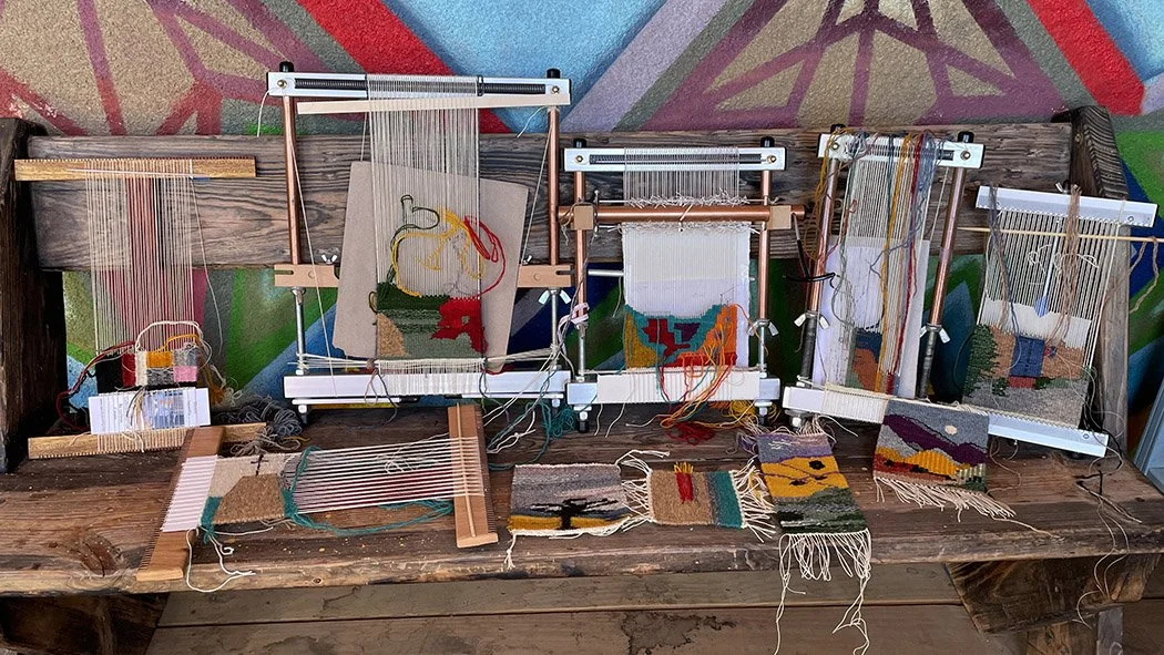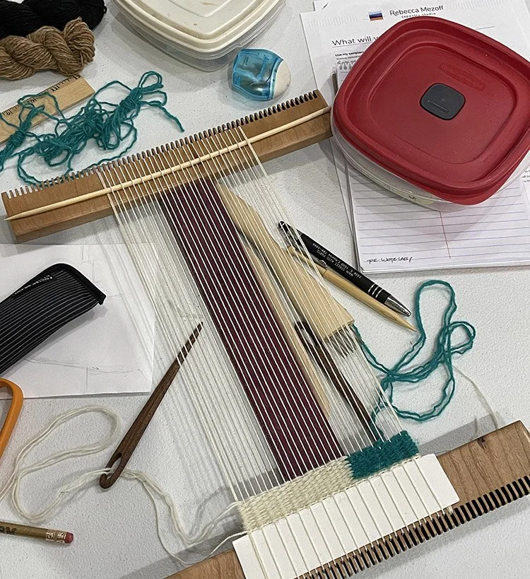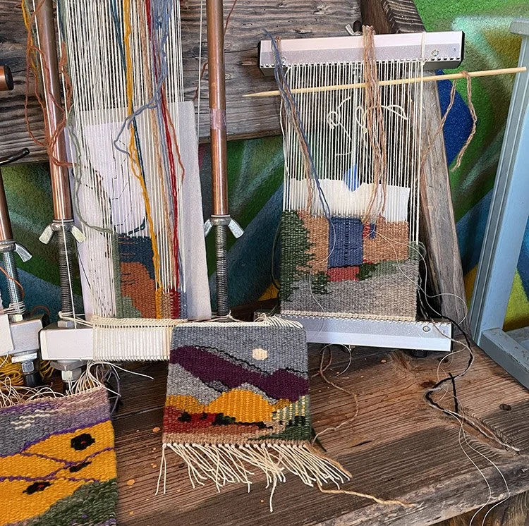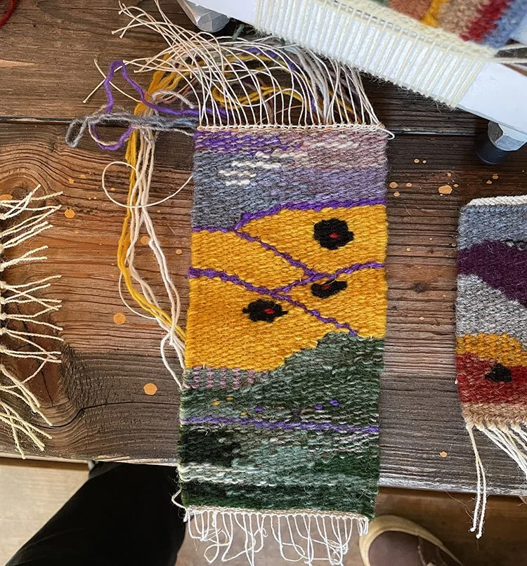 Nick dove right into his design about an adobe church. And Adriana started a tapestry about the Taos tree (if you know you know) which she finished the second day and then wove a second tapestry as well.