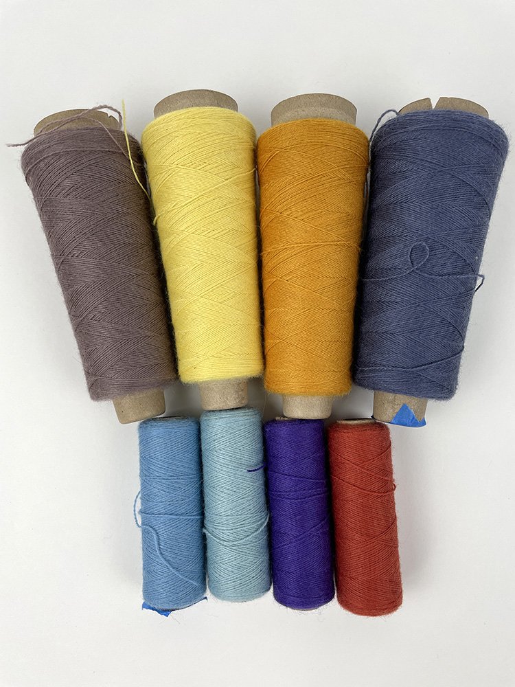 If you’re taking one of my shorter classes or weaving mostly on small looms, you can purchase smaller amounts of yarn. Gist’s Array comes in 1 ounce tubes or 4 ounce cones. The tubes are fine for small projects. Other yarns come in various put-ups though a frequently one is 4 ounces in cones or skeins.