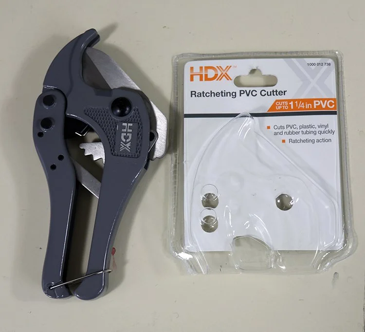 Simple PVC pipe cutter. Note that this one only cuts up to 1.25 inch PVC pipe so if you’re using bigger pipe than that for a loom, then you’d want a different size. For jigs, I use 1/4 inch PVC pipe and I’ve been buying the stuff they use for sprinkler systems which is slightly thinner and less expensive.