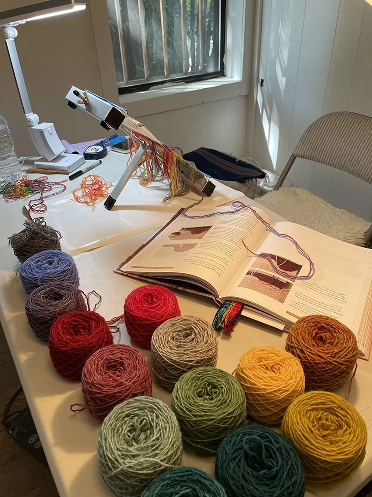 And as always I love seeing my book in use during a class. And besides books, my other favorite thing in the world is yarn. Speaking of yarn, I’ve been using Taos Wools Chica for some experiments with wedge weave this year and I love it so much. What a beautiful material this churro wool is and it is dyed so beautifully. Thanks Joe! (You can buy your own from Taos Wools. They ship!)