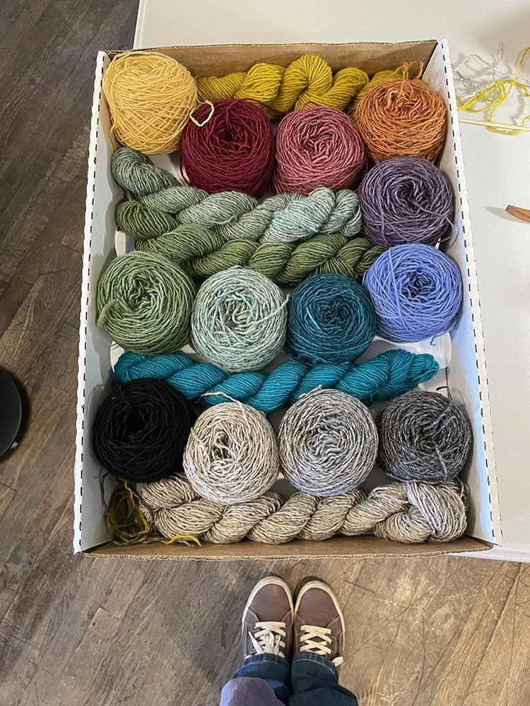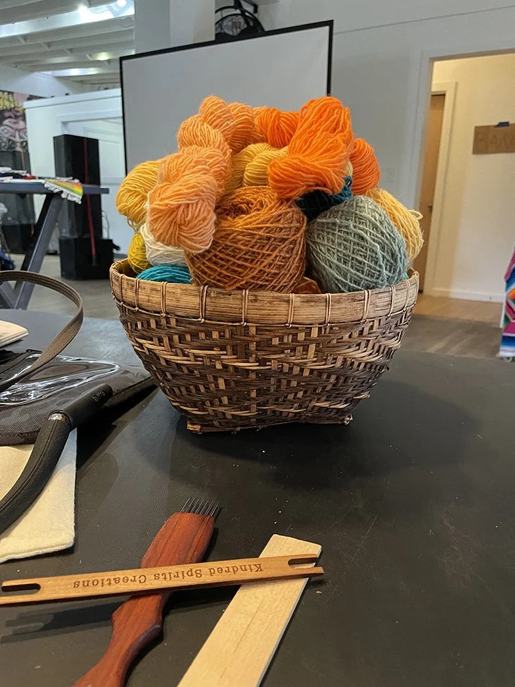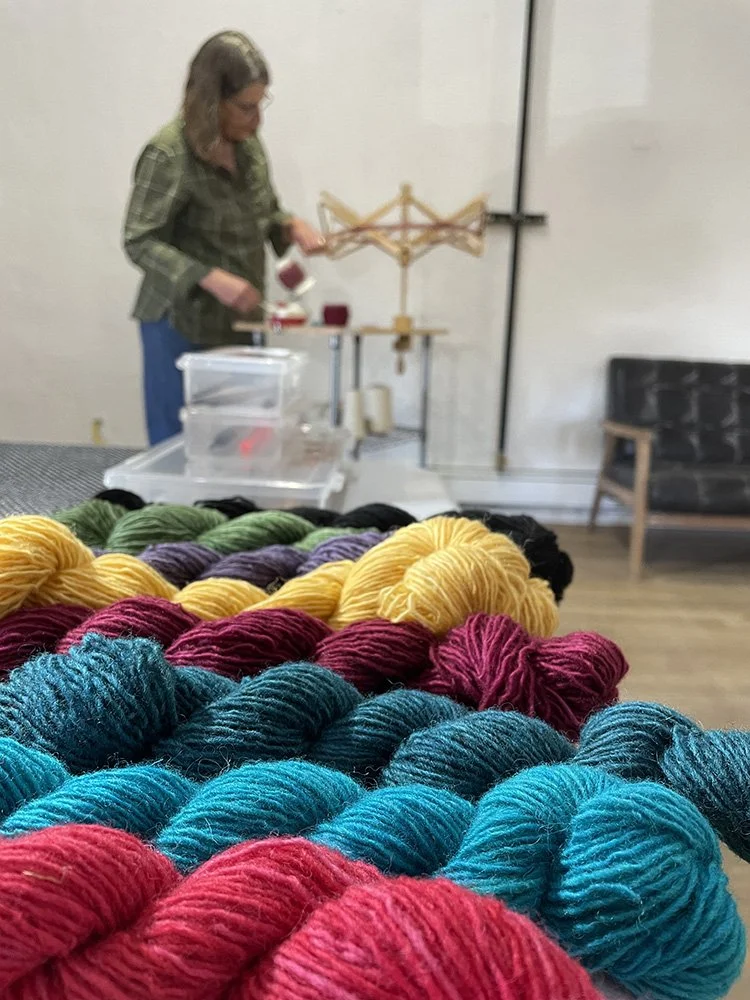 We were working with Taos Wools Chica yarn. This is a gorgeous churro yarn that is hand-dyed by Joe Barry himself. For this workshop there were piles of little skeins in all sorts of colors. It was definitely like being in a candy shop!