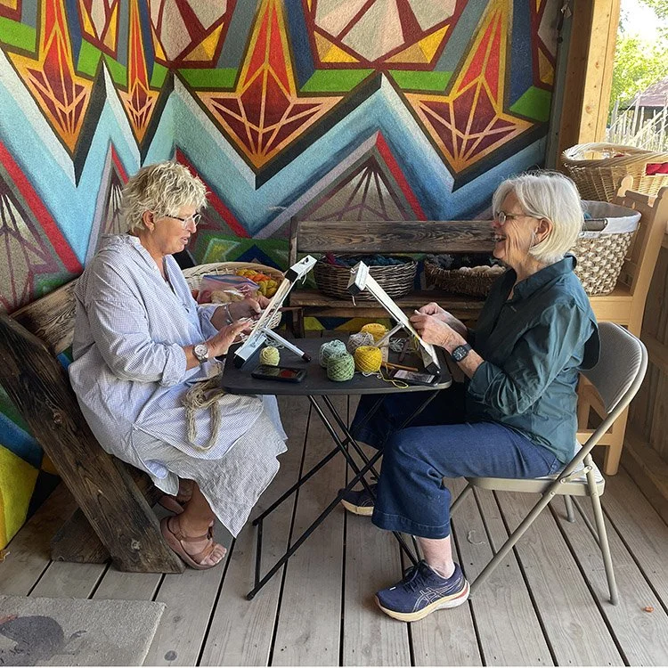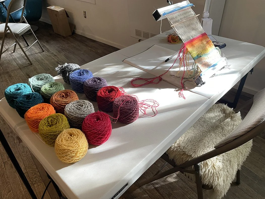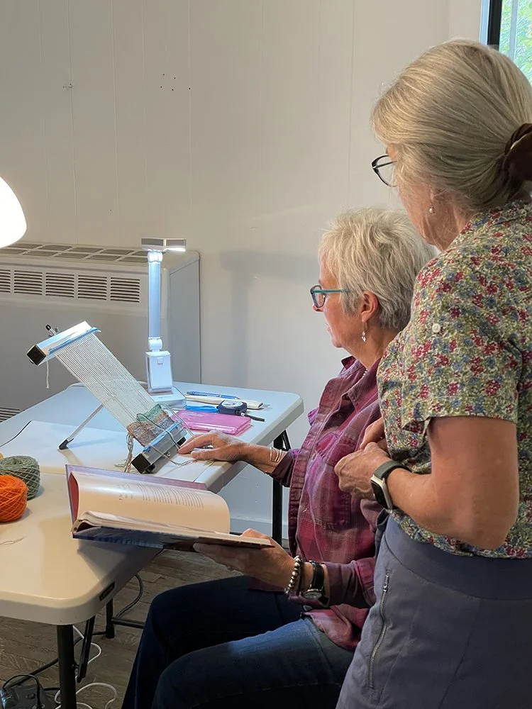 Carol and Ann talking about Carol’s colors (this is a Chloe loom)