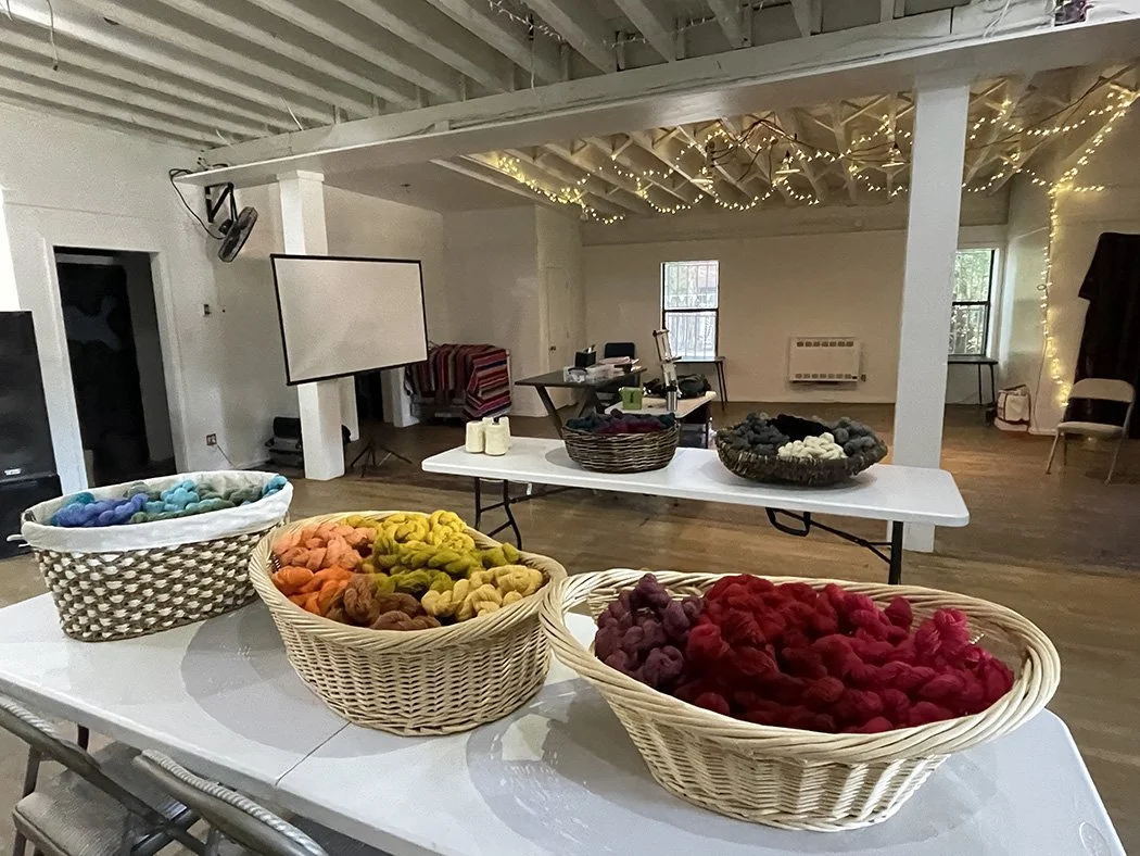 We made good use of the ball winders and swifts to turn those adorable skeins of yarn into cakes for weaving. Everyone went home with a lovely color selection for continued work.