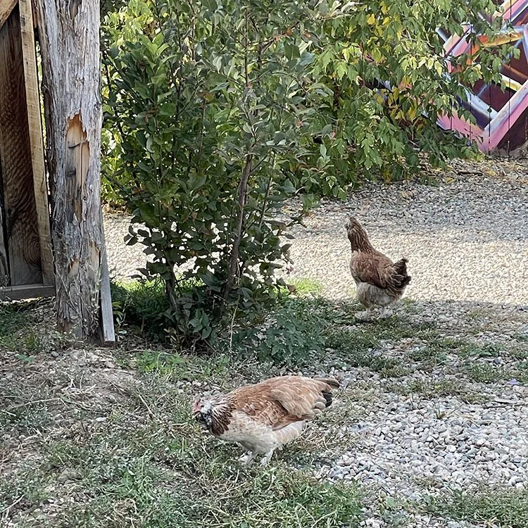 Chickens making themselves at home. They’d escaped a neighbor’s yard… or maybe they just love the big bird statue!