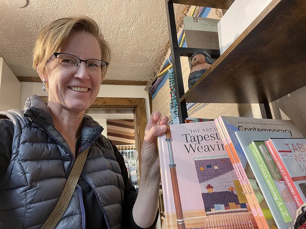 Lara Manzanares was exceptionally helpful to me when I was writing this book. I was looking for a clean picture of a Rio Grande walking loom being used. I used to have one of these wonderful looms but didn’t have any decent photos. Lara provided an excellent example and as a bonus, she is the weaver working on the loom.