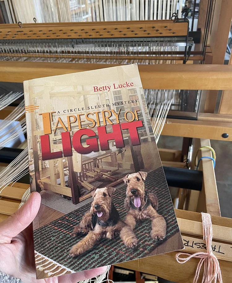 If you’re looking for a fun summer mystery which involves tapestry weaving, Betty Lucke’s 2023 mystery, Tapestry of Light, might be for you. The story takes place in Santa Fe, NM. Karen Bjornson is a tapestry weaver who is trying to finish a large tapestry for a show in a Santa Fe gallery. Her subject is racism and the imagery was developed after she witnessed an incident where a child was being bullied in a coffee shop.