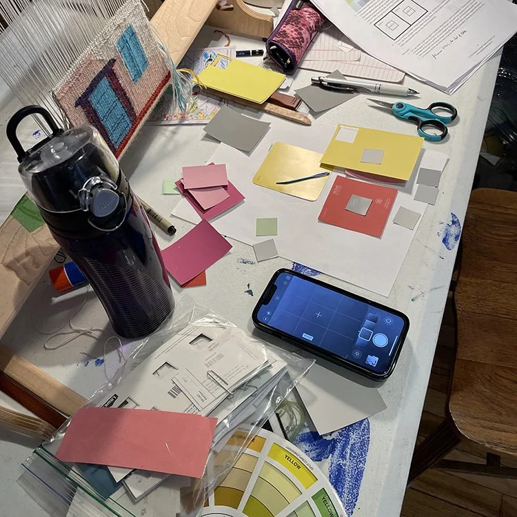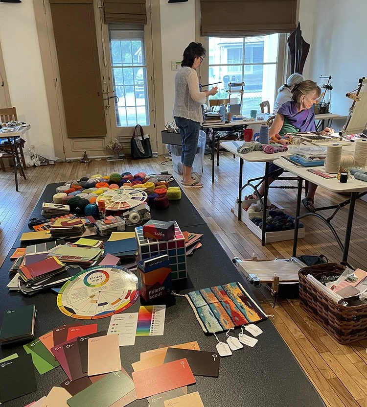 This month I had the good fortune of leading a retreat all about color use in tapestry in Vermont. Our focus was designing color palettes for our work. I suppose we could say we were playing with the process of choosing colors. Color is a big part of designing and tapestry weaving has its own particular set of challenges and advantages when using color.