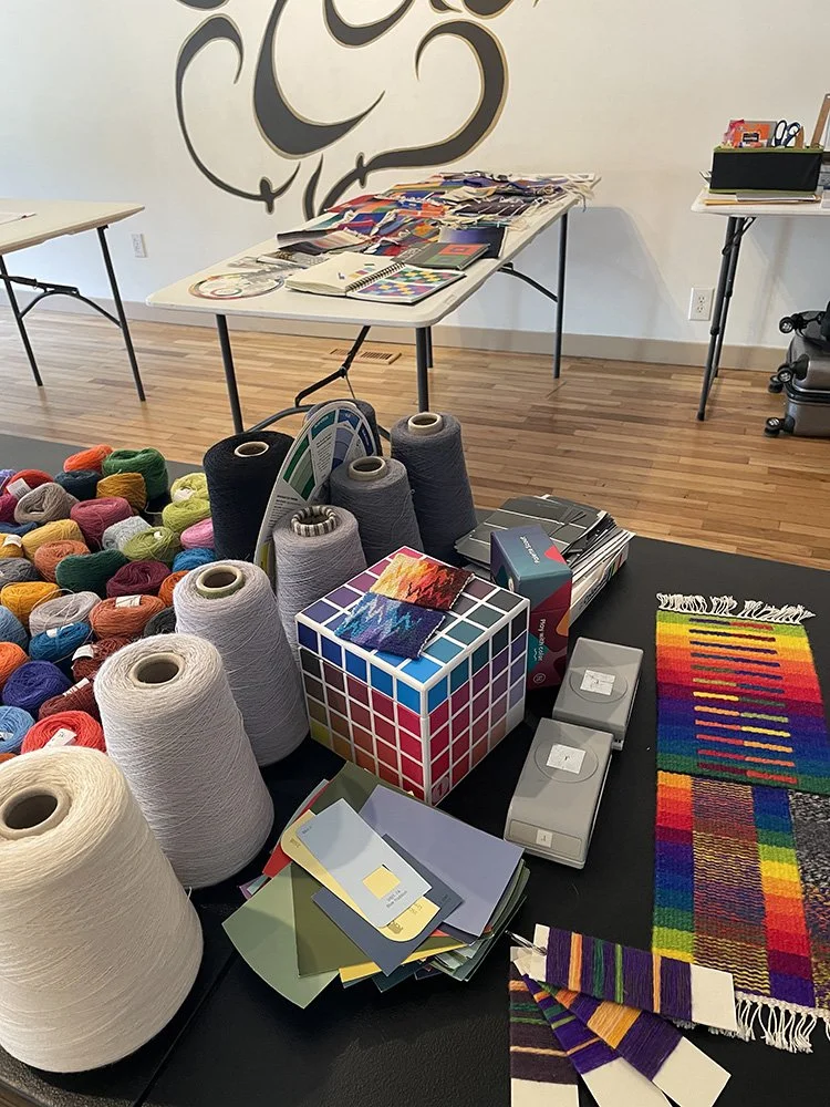 Color theory can be very helpful when it comes to choosing colors for your artwork. When learning to think like a tapestry artist in the realm of color choice, having a little theory knowledge can really come in handy when deciding which wefts to use. So we always spend some time on some of the most important color theory concepts.
