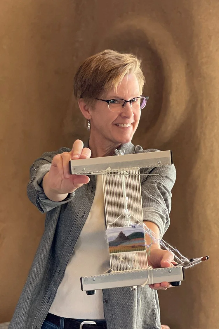 Tapestry weaving is a wonderful way to create images with yarn. Whether you’re weaving small things on looms you can hold in your lap and travel with or creating large-format works on floor looms, I hope my online classes help you on your journey. If you need to see some reviews from past students, there are many on my website HERE.