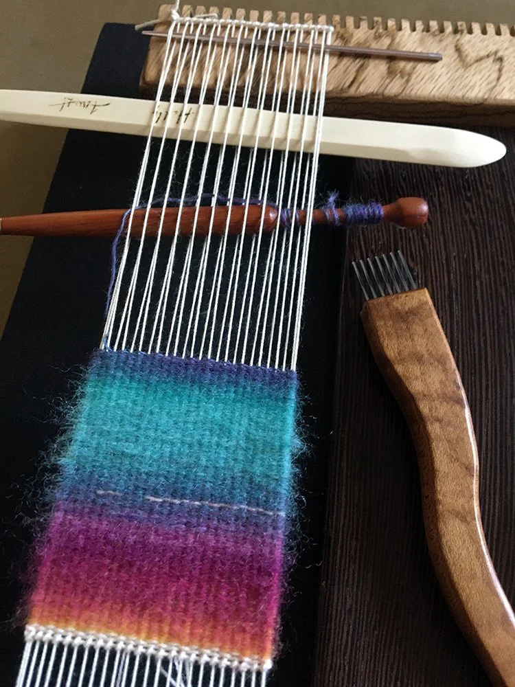 One of Rebecca’s tapestry diary pieces woven with handspun. With almost no official tapestry in this weaving, it was a joyous watching of the handspun color change as I wove them in one pick at a time.
