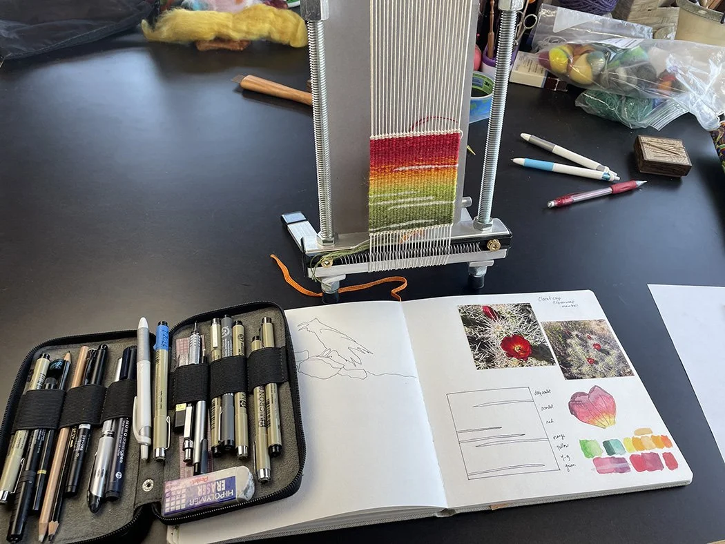 Summer of Tapestry kicked off with the first prompt this week. This is the class where I teach my favorite thing, sketch tapestry. We learn to simplify ideas and weave from our surroundings. There is still plenty of time to join us. More information is on my website HERE. You get forever access to the class and the joy of being part of a vibrant and international community of tapestry weavers.