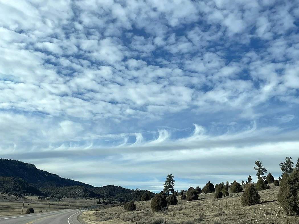 I’ve been a bit obsessed with how to use cloud forms in woven structures lately. I’m not really interested in weaving clouds realistically, but I am interested in using what I see in the sky as inspiration. Driving home from Durango a few weeks ago, these beauties showed up.