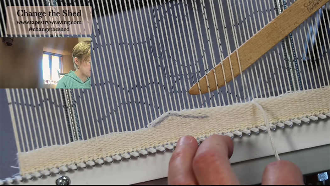 April 9, 2025 is HERE. Today I put in new colors for the It’s Fine tapestry. There was a bonus Behind the Scenes video this week where I talked more about setting in the colors and showed how I did the eccentric split weft dark line in the weaving. That is on Patreon for paid subscribers. More information about Patreon is HERE.
