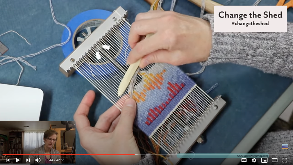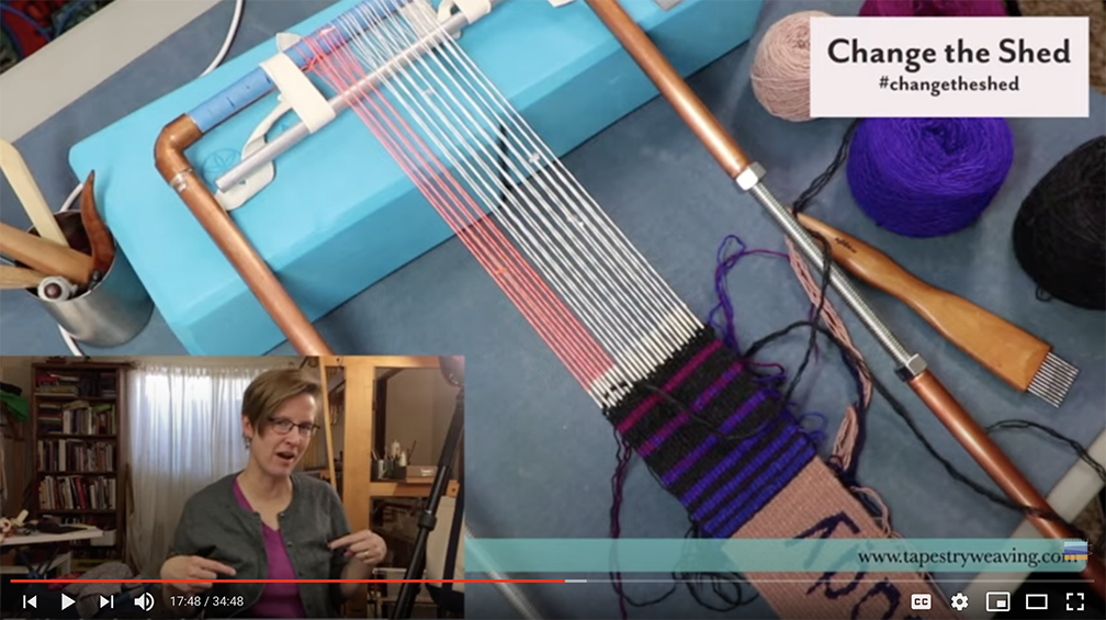 Monday, April 6, 2020 is HERE. The story about the Disney Princess tapestry for the cover of my book, The Art of Tapestry Weaving. I also worked on the Steady piece on a small copper pipe loom. I also gave a slow motion demonstration of picking the shed on this kind of loom.
