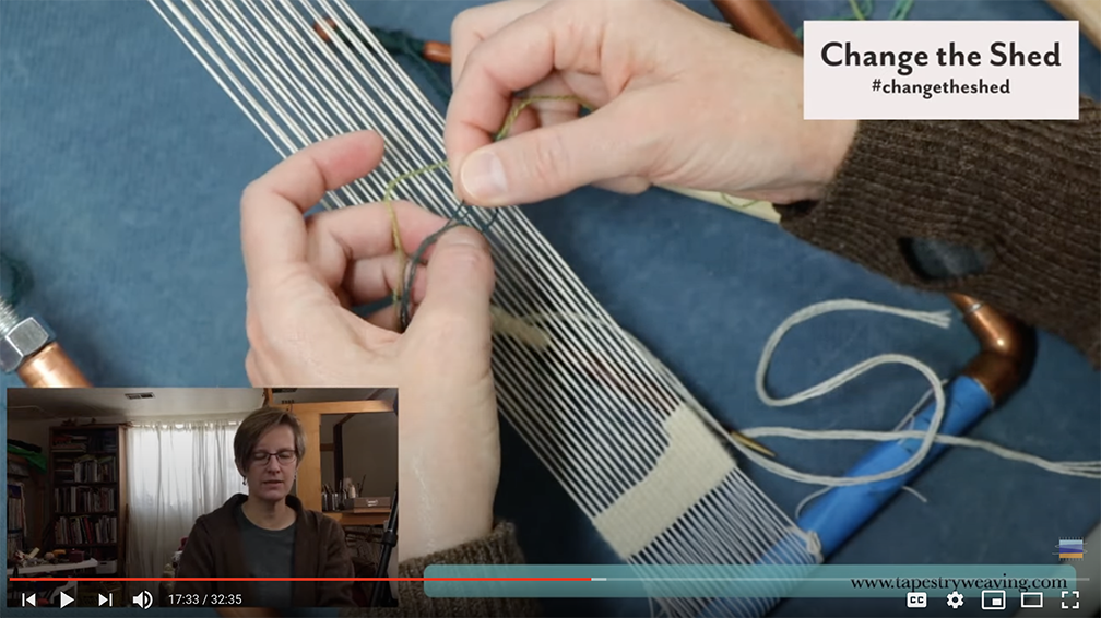 Tuesday, March 31, 2020 is HERE. Working on the Steady tapestry on the copper pipe loom. Some close ups of picking the shed. Talked some about the way people are doing four selvedge weaving on the Mirrix Saffron loom versus the Fringeless method I’m using this piece where you have a shed for the whole weaving.