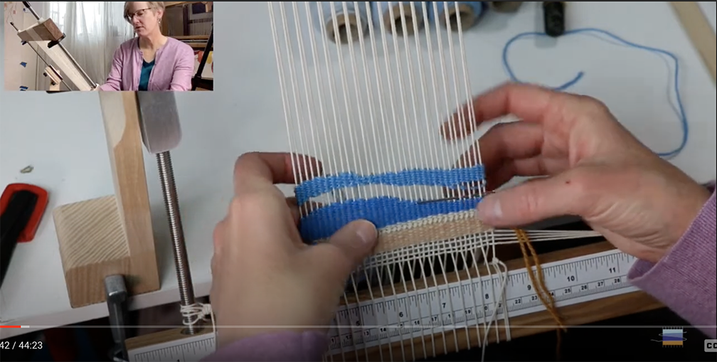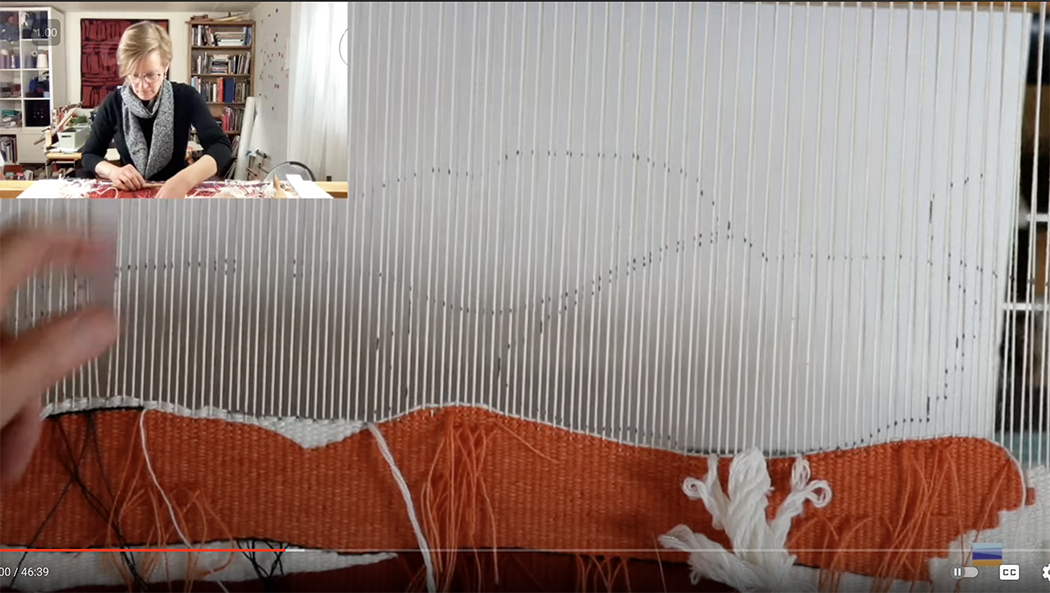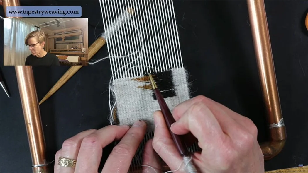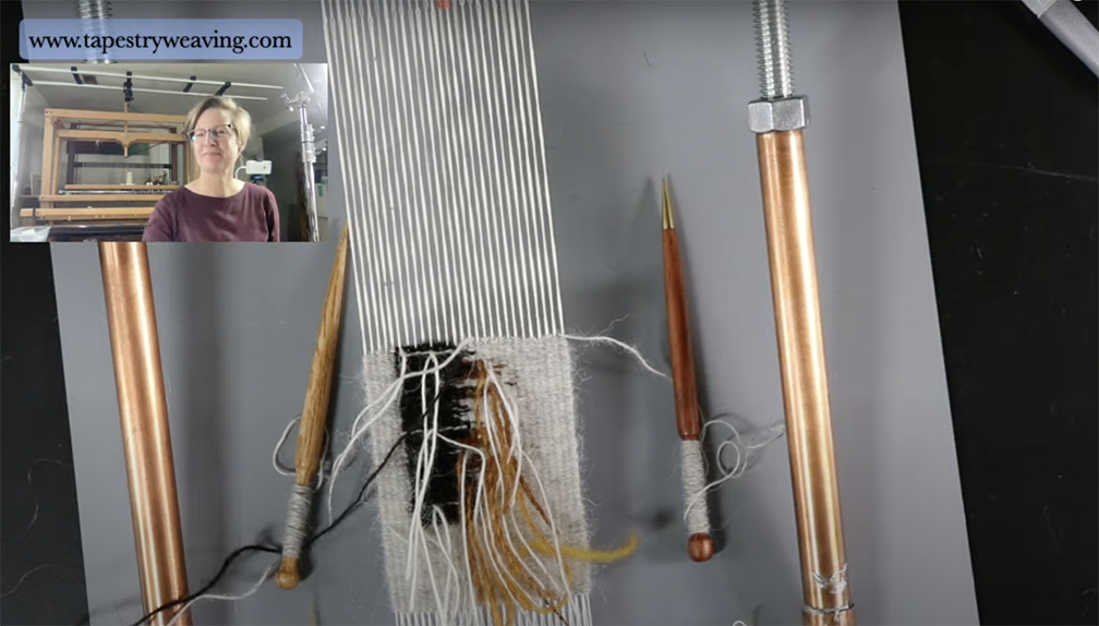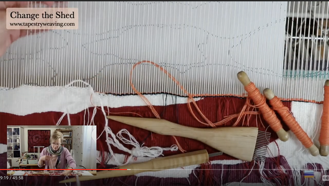 “As a beginning weaver, I find watching you actually weave, how you use your hands, manipulate the weft, etc. extremely helpful as a supplement to your wonderful book on tapestry. It is my constant reference as I sit at my loom. Weaving has become my new obsession!! (You forgot to warn readers and viewers that becoming obsessed with tapestry is a possibility!)”