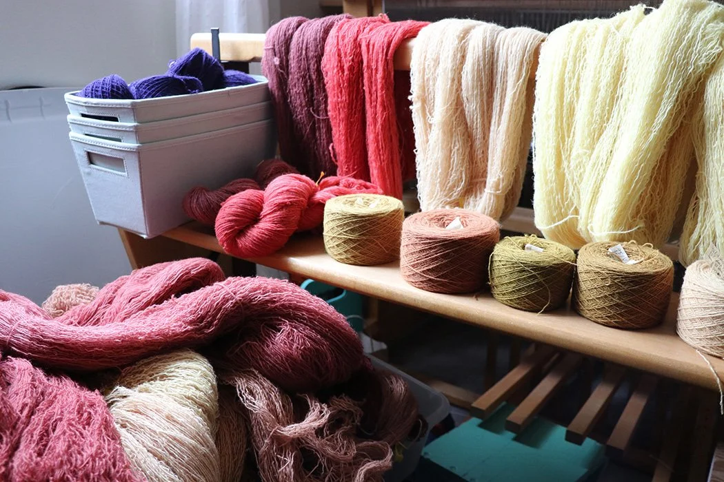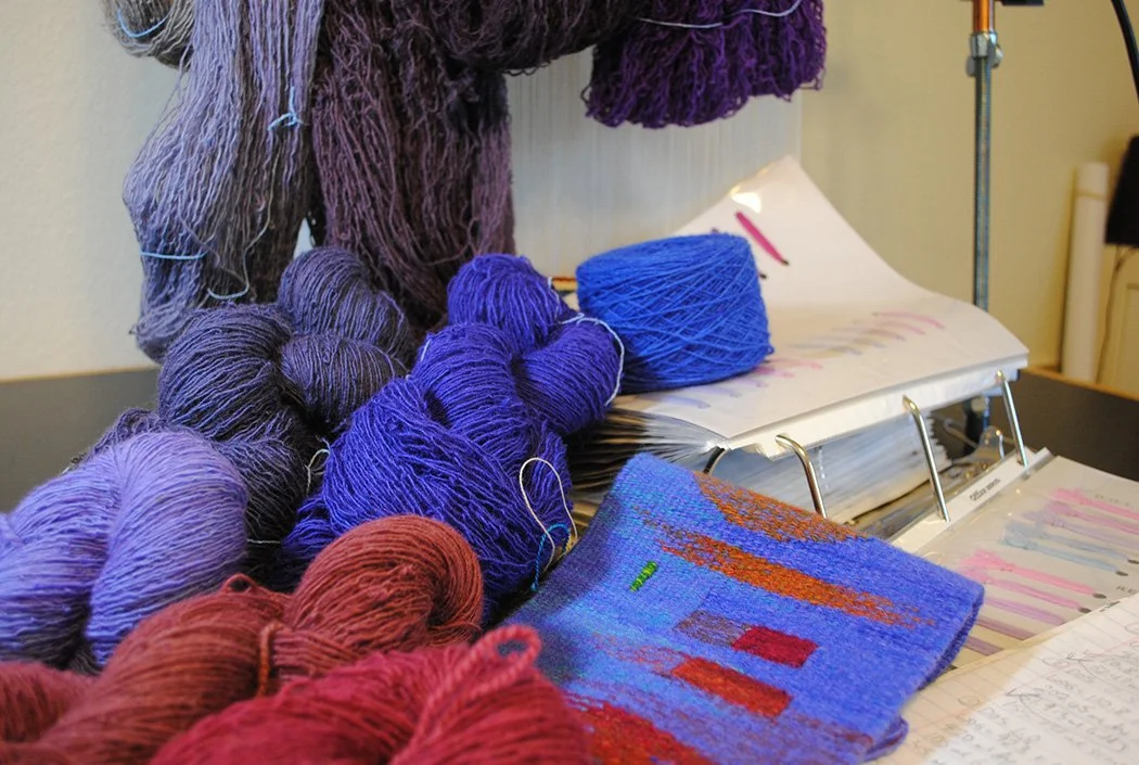 Rebecca Mezoff is a tapestry artist, author, and teacher who dyes her own yarn for her large and small-format tapestries. While Rebecca dyes most often for tapestry weaving, she also loves to create custom yarns for knitting and has spent a lot of time dyeing fiber for spinning in the pursuit of the perfect yarn. Join her to learn how to make your own fiber palette. Rebecca learned acid wool dyeing in a college course in 2005 and has been dyeing her own colors ever since. She further honed her skills as an apprentice of master tapestry artist James Koehler.