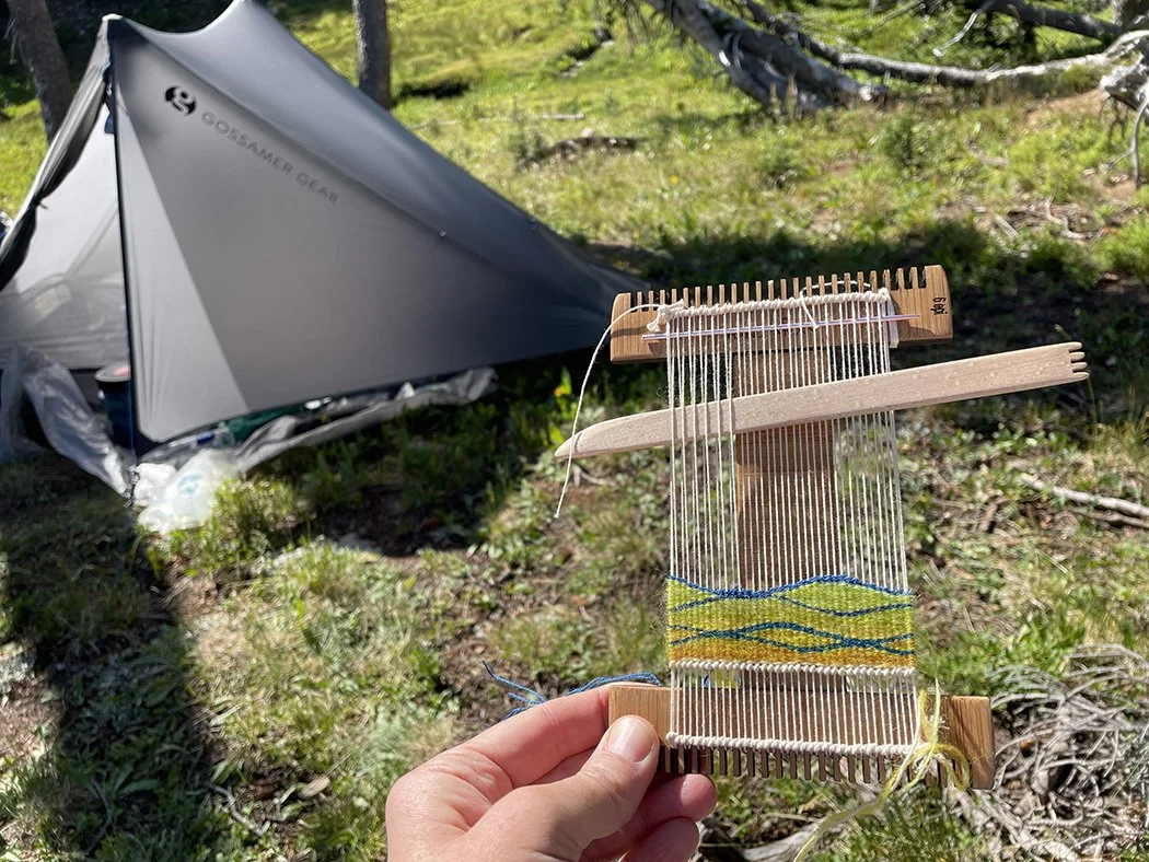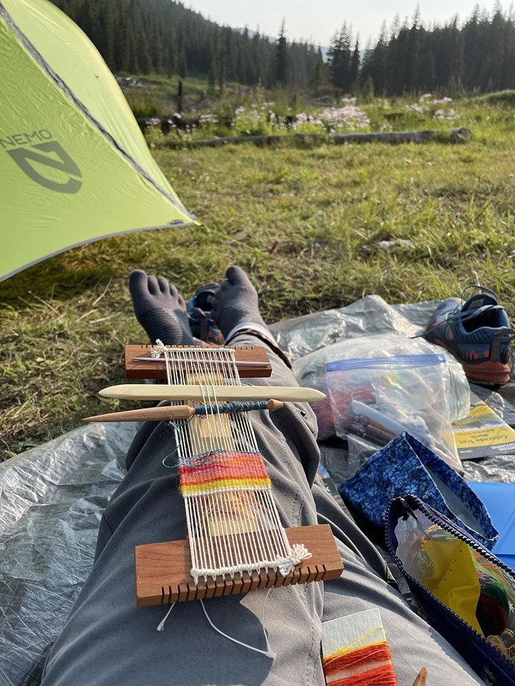 Sometimes I weave outside and sometimes I weave at home in the studio. Sometimes I’m backpacking or on a road trip and can weave during rest periods or when someone else is driving. But in all cases, this practice helps me mark time, enjoy my surroundings, and express myself with yarn in tapestry.