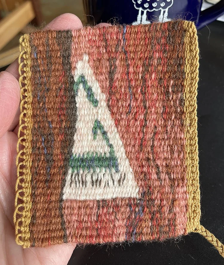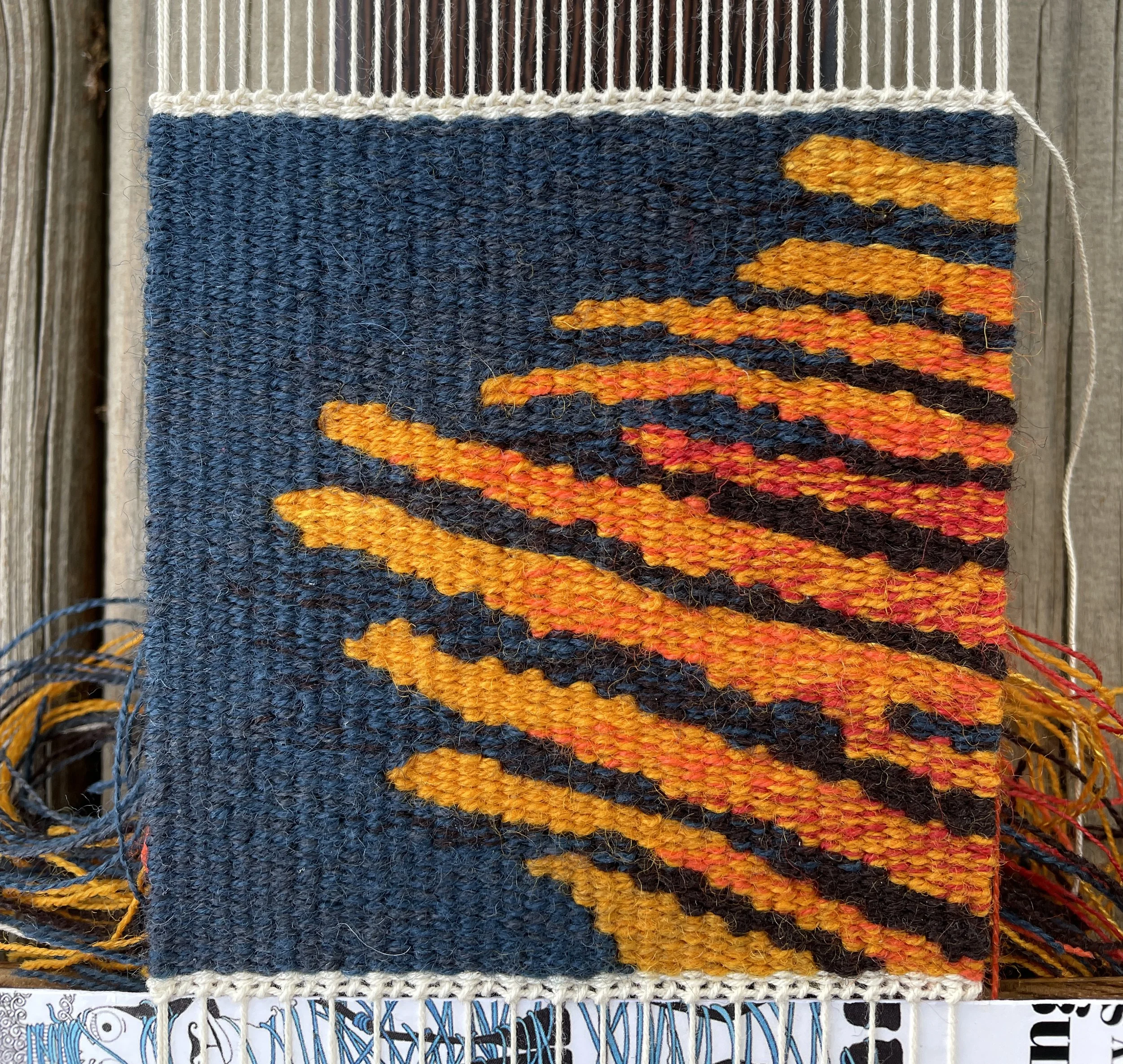 “Summer of Tapestry 2022. I took this course and enjoyed it so much! It was very helpful in learning how to come up with subject ideas for small, fun weavings. And it was so interesting to see what the other class members were doing.”